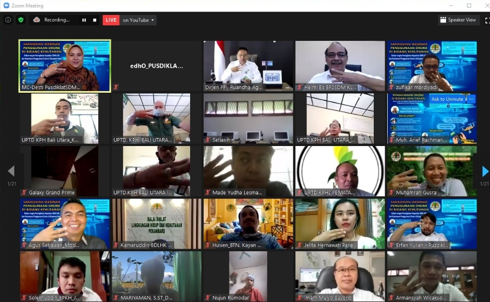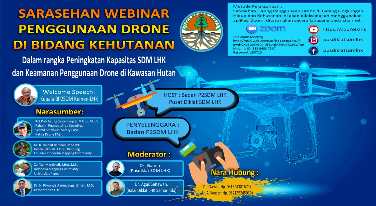 purnamasofyan.my.id, BP2SDM Menggelar sarasehan webinar penggunaan drone di bidang kehutanan pada hari Rabu, 15 Juli 2020. Sarasehan ini di buka oleh Kepala Badan P2SDM Kementerian LHK Ir. Helmi Basalamah., M.Sc, kemudian narasumber pada sarasehan tersebut menghadirkan dari Instansi, Praktisi dan Ahli lainnya, Yaitu dari TNI Angkatan Udara, ITB, Univ. Papua, dan Ditjen PPI Kementerian LHK.