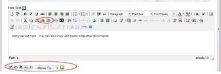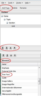 - Now go to the iDevice window below. iDevices are instructional elements that you can use to populate your screens. Select the “Free Text” iDevice. After you click “Free Text”, an editor window is shown which works much like your standard MS Word editor.